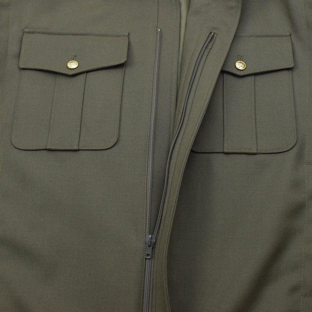 - Den tjeckiska fältjackans design inkluderar en klassisk militär look med en strukturerad krage och axelepauletter. Justerbara muddar och midja säkerställer en bekväm och personlig passform, vilket gör den lätt att bära under långa perioder.