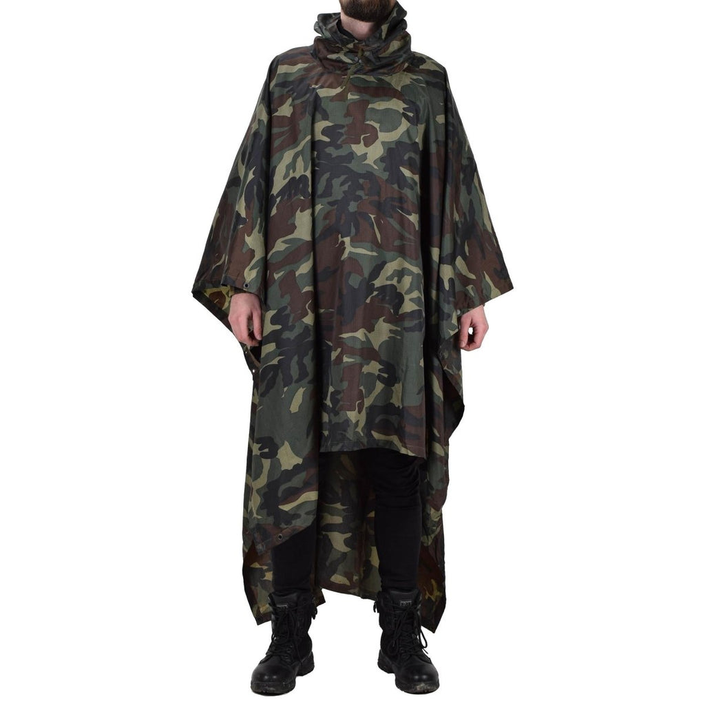 - Utrustad med huva ger denna poncho med huva extra skydd mot regn och vind. Gör den oumbärlig för camping, vandring eller andra utomhusaktiviteter. Den flerfärgade camodesignen lägger inte bara till stil utan smälter också sömlöst med naturliga omgivningar. Med dimensioner som mäter 150x240 cm ger den gott om täckning för att hålla dig skyddad från väder och vind.