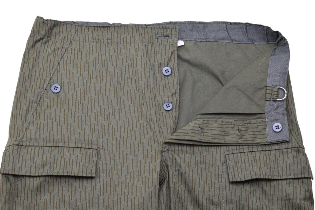 - Dessa vintage tyska militära NVA-byxor, som går tillbaka till 1958, bär på ett stycke historia. Strichtarns camomönster, som ursprungligen utvecklades för den tyska militären, ger dessa byxor en unik och autentisk look. Oavsett om du är en militärsamlare eller en friluftsentusiast, gör dessa byxor ett uttalande med sin kvalitet och funktionalitet.