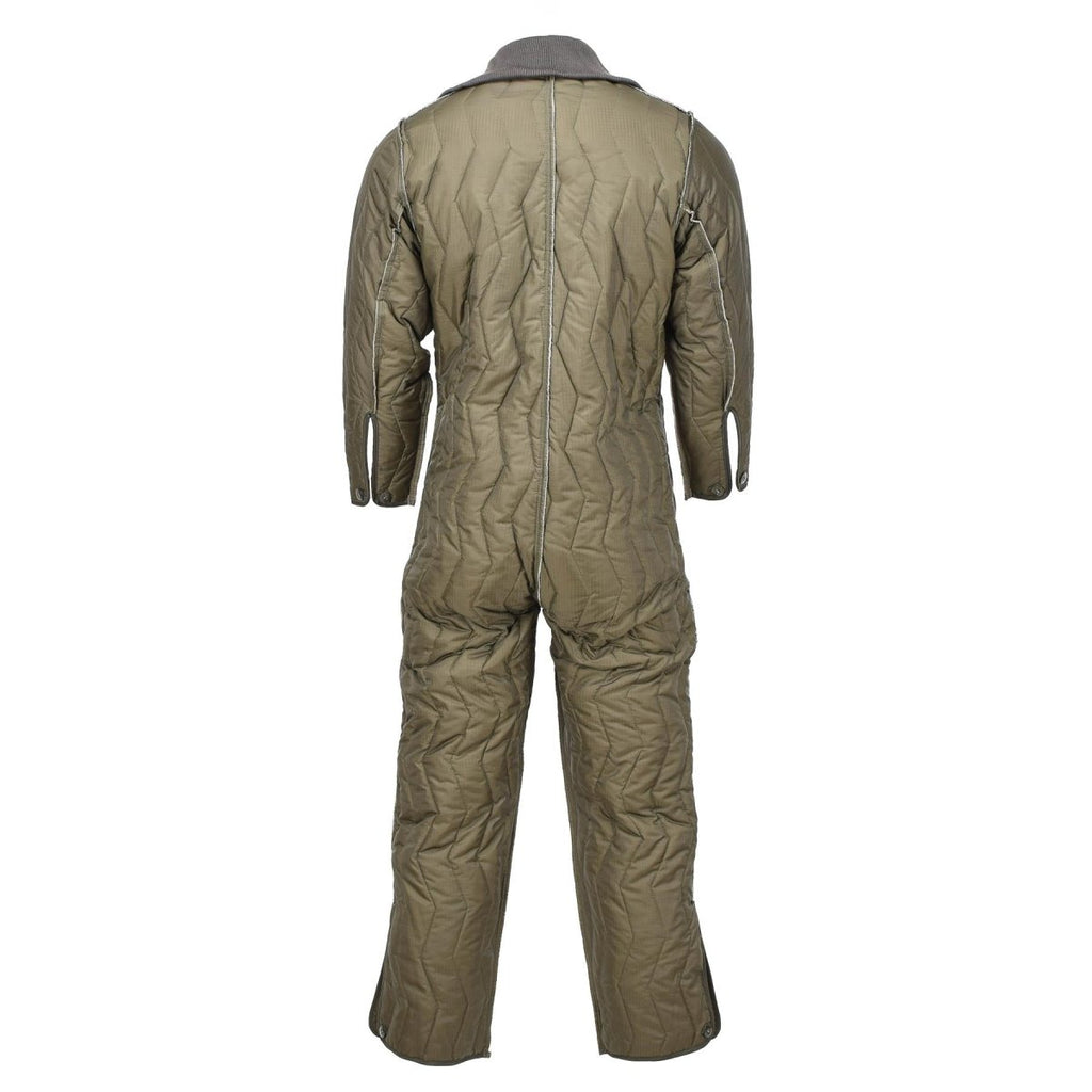 Det tyska militära quiltade överdragsfodret är ett termiskt quiltat foder designat för att ge värme i kalla väderförhållanden. Den är avsedd att bäras som ett lager under en overalldräkt, som vanligtvis används av militär personal för att skydda mot tuffa miljöer. The coverall suit liner is designed with buttons on the cuffs and legs to ensure a secure fit and prevent cold air from entering. Den är också gjord av ett olivfärgat material, som vanligtvis används av den tyska militären. Sammantaget är detta tyska militära quiltade overallfoder ett funktionellt och pålitligt alternativ för dem som behöver värme och skydd i kalla väderförhållanden.