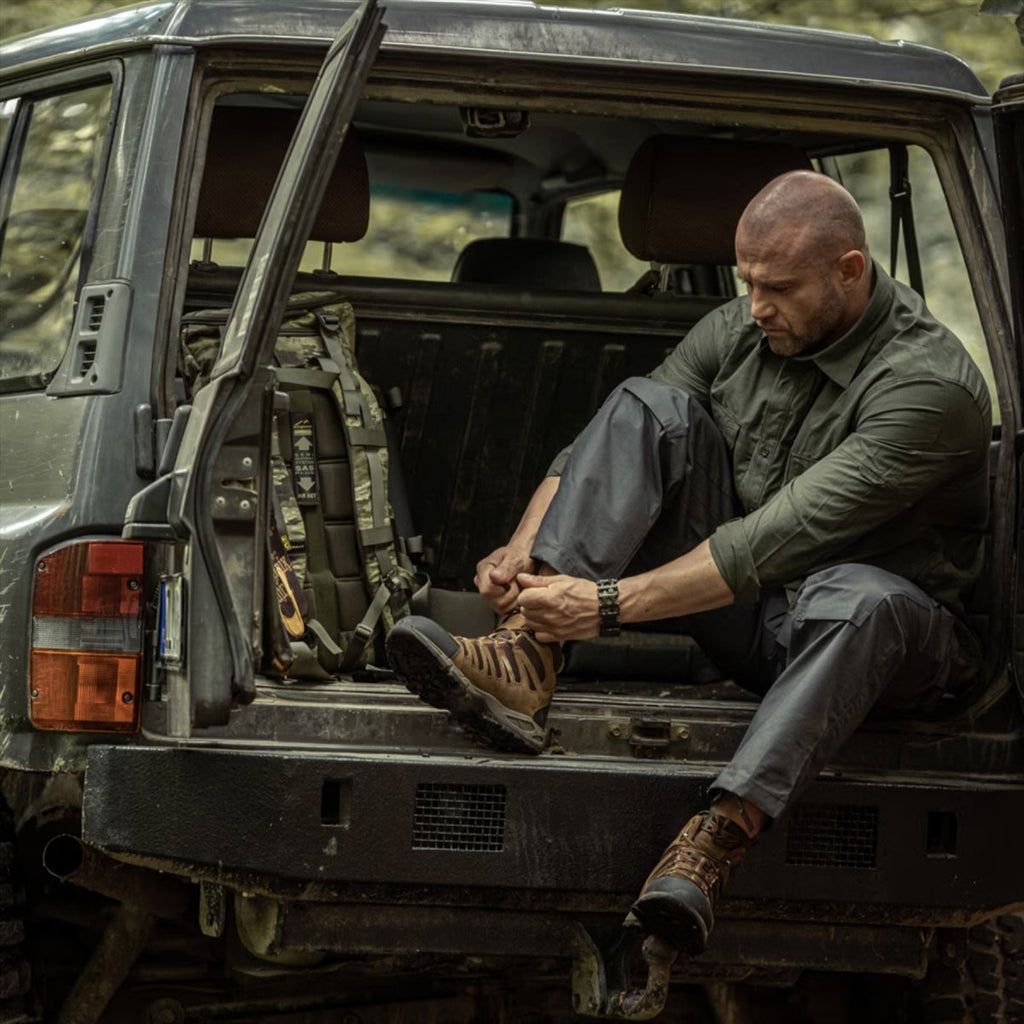 The Pentagon Achilles Nubuck XTR 6" Boots in Terra Brown are built for performance in demanding conditions. Featuring a durable nubuck leather upper with breathable 1200D nylon panels, they offer both strength and comfort. The Hydroguard® membrane ensures water resistance, while the slip- and oil-resistant rubber outsole provides stability on various surfaces. A shock-absorbing EVA midsole and removable EVA insole deliver long-lasting comfort. Ankle-high mid-top design enhances support without limiting mobility.