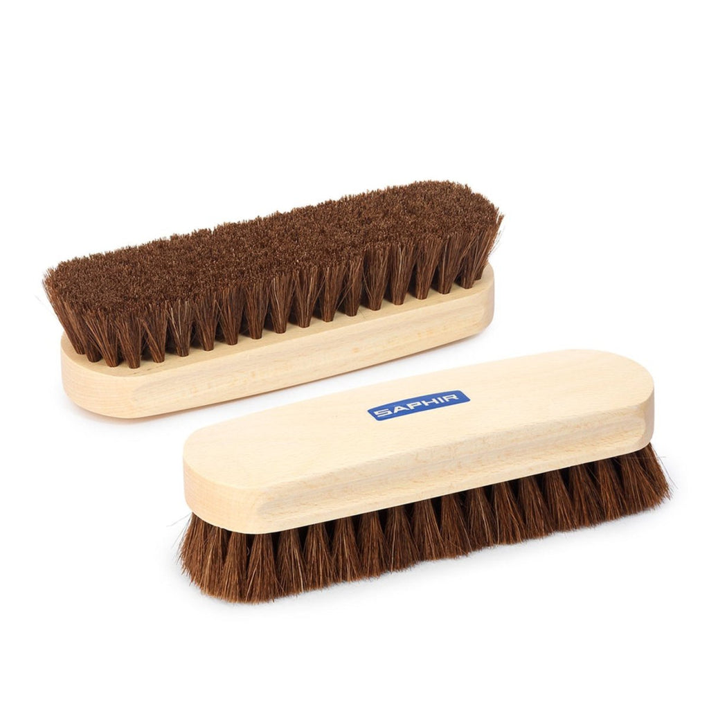 Saphir hästhårsskoborste 18 cm är designad för vård och rengöring av läder- och tygskor. Tillverkad med högkvalitativa naturliga tagelborst, tar borsten försiktigt bort damm, smuts och ytskräp utan att skada ömtåliga material.