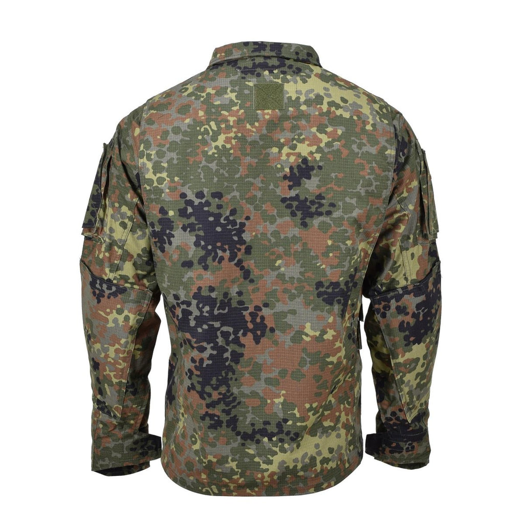 Flecktarn Camo-skjorta levererar hållbarhet, taktisk funktionalitet och militärinspirerad stil för utomhusentusiaster, överlevnader och proffs.