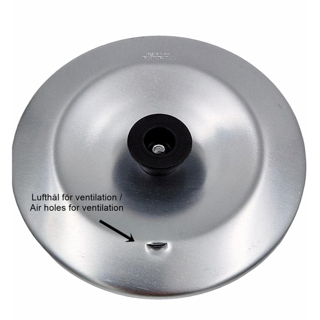 - Vattenkokaren har även en slitstark knopp i rostfritt stål på locket. Denna ratt säkerställer ett säkert grepp och värmebeständighet, vilket möjliggör säker hantering under matlagning. Kombinationen av material säkerställer långvarig hållbarhet och tillförlitlighet under utomhusförhållanden.