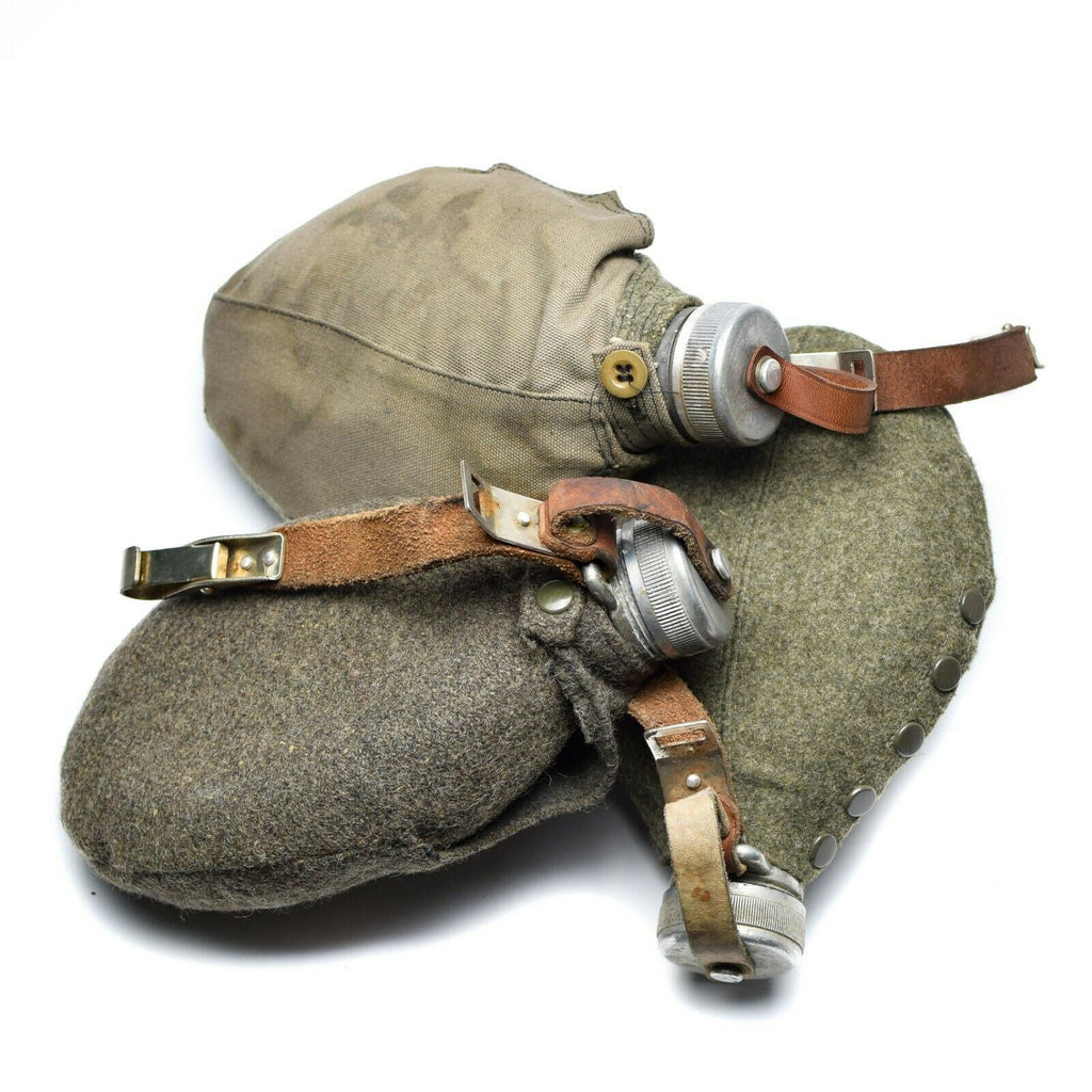 Original vintage militär metallkolv utfärdades Under andra världskriget för soldater i den svenska armén för användning i fältet. Dessa kolvar var vanligtvis gjorda av metall och kom med en ullpåse för att skydda dem från skador. Kolven hade en metalllock som kunde skruvas loss för att fylla den med vatten eller andra vätskor och sedan skruvade på för att hålla innehållet säkert. Ullpåsen gav ytterligare isolering och skydd, liksom ett bekvämt sätt att bära kolven när den inte används. Sammantaget var den ursprungliga vintage militära metallkolven ett praktiskt och väsentligt föremål för svenska soldater i fältet under kriget.